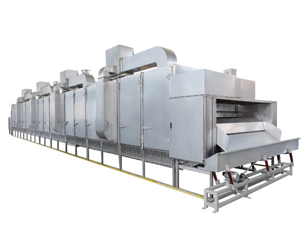 該烤爐采用循環(huán)熱風(fēng)方式進(jìn)行穿透式烘烤;烘烤過程物料厚度、行進(jìn)速度自動(dòng)可調(diào),連續(xù)進(jìn)出;烘烤溫度單元式控制,可實(shí)現(xiàn)各單元溫度獨(dú)立調(diào)整;后置獨(dú)立冷卻區(qū),無需單獨(dú)冷卻;模塊式結(jié)構(gòu),產(chǎn)量提高亦無須變更設(shè)備;熱源多元化,可使用天然氣、液化氣、導(dǎo)熱油、電等。本機(jī)以其結(jié)構(gòu)及性能的優(yōu)越特點(diǎn),為堅(jiān)果炒貨行業(yè)提供了一機(jī)多用,產(chǎn)品質(zhì)量穩(wěn)定的理想設(shè)備,主要可加工的產(chǎn)品有五香花生米、乳白花生米、磨醬米、巴旦木、腰果、蕎麥等各種顆粒類食品。